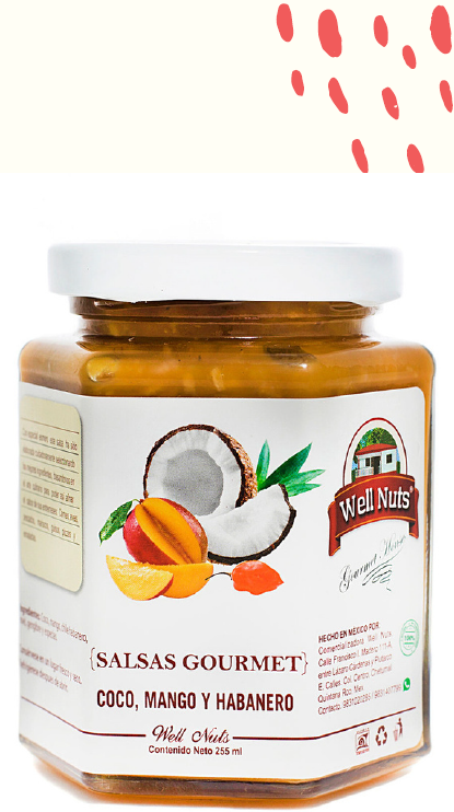 Exquisita combinación del coco, mango y habanero. Esta salsa es ideal con pan artesanal, quesos, empanizados y crepas.